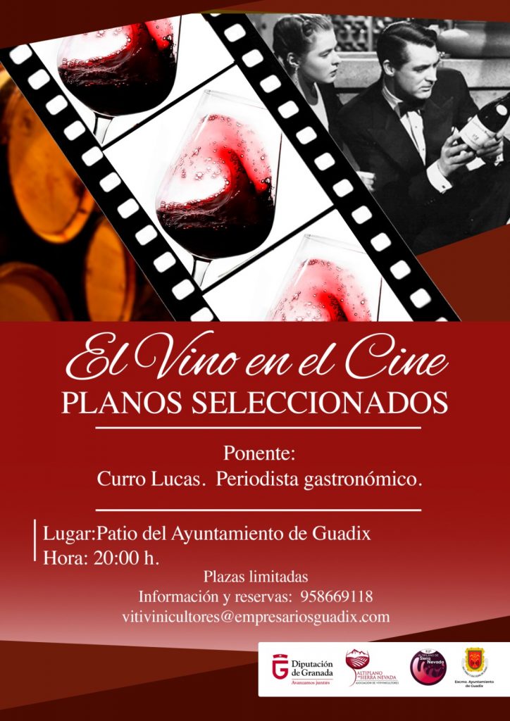 Magnífica ponencia la impartida por Curro Lucas sobre el Vino en el Cine: Planos Seleccionados, que tuvo lugar en el Patio del Ayto. de Guadix. Actividad organizada por la Asociación de Vitivinicultores del Altiplano Sierra Nevada y financiada por Diputación de Granada.