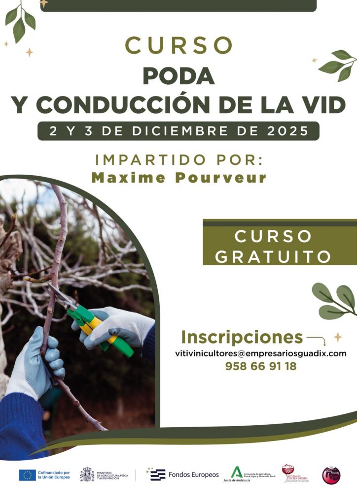 Durante 2 días, ha tenido lugar, el día 2/12/25 en Bodegas Vertijana y el día 3/12/25 en la Sede de la Asociación de Vitivinicultores Altiplano de Sierra Nevada, la realización del Curso de Poda y Conducción de la Vid, con clases prácticas por las tardes.